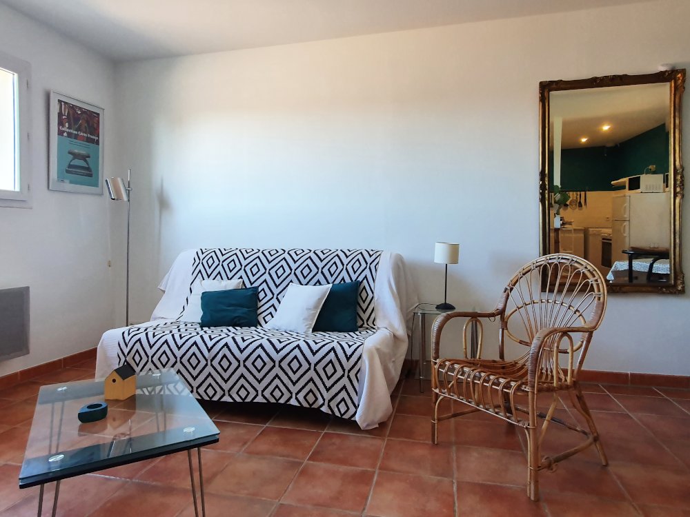 Le séjour spacieux de 25 m² est équipé d’un canapé-lit confortable (2 personnes), de rangements et d’une table avec chaises, offrant un espace agréable pour se détendre ou partager vos repas. La cuisine attenante est entièrement équipée : lave-vaisselle, grand réfrigérateur, plaques électriques, four, micro-ondes, cafetière, grille-pain, bouilloire et tous les ustensiles nécessaires pour préparer facilement vos repas. La chambre double dispose d’un lit 160 cm avec matelas récent et rangements.